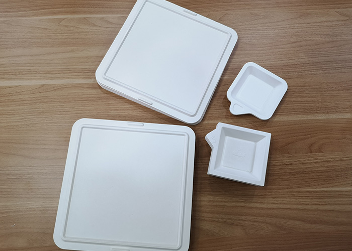 甘蔗渣纖維是中長纖維,具有強度適中、韌性適中的優(yōu)點,是目前來說最合適紙漿模塑制品的原料,因此甘蔗渣漿制品是目前適用范圍最為廣泛的。目前餐盒餐具類產品多使用甘蔗渣纖維,還有一些高端的手機托、化妝品包裝也有用這個原料。