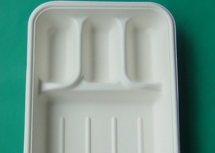 竹漿多用于制造高檔的手機包裝內托、化妝品包裝,也用于制造餐具,是一種很好的紙漿模塑原材料。生產形狀復雜、斜度和R角較小的產品一般都需要加入一定比例的竹漿。由于竹漿資源比較寶貴、價格相對蔗渣漿稍高,所以目前多用于與蔗渣纖維按一定的比例調配使用,以增加性能而又降低成本。